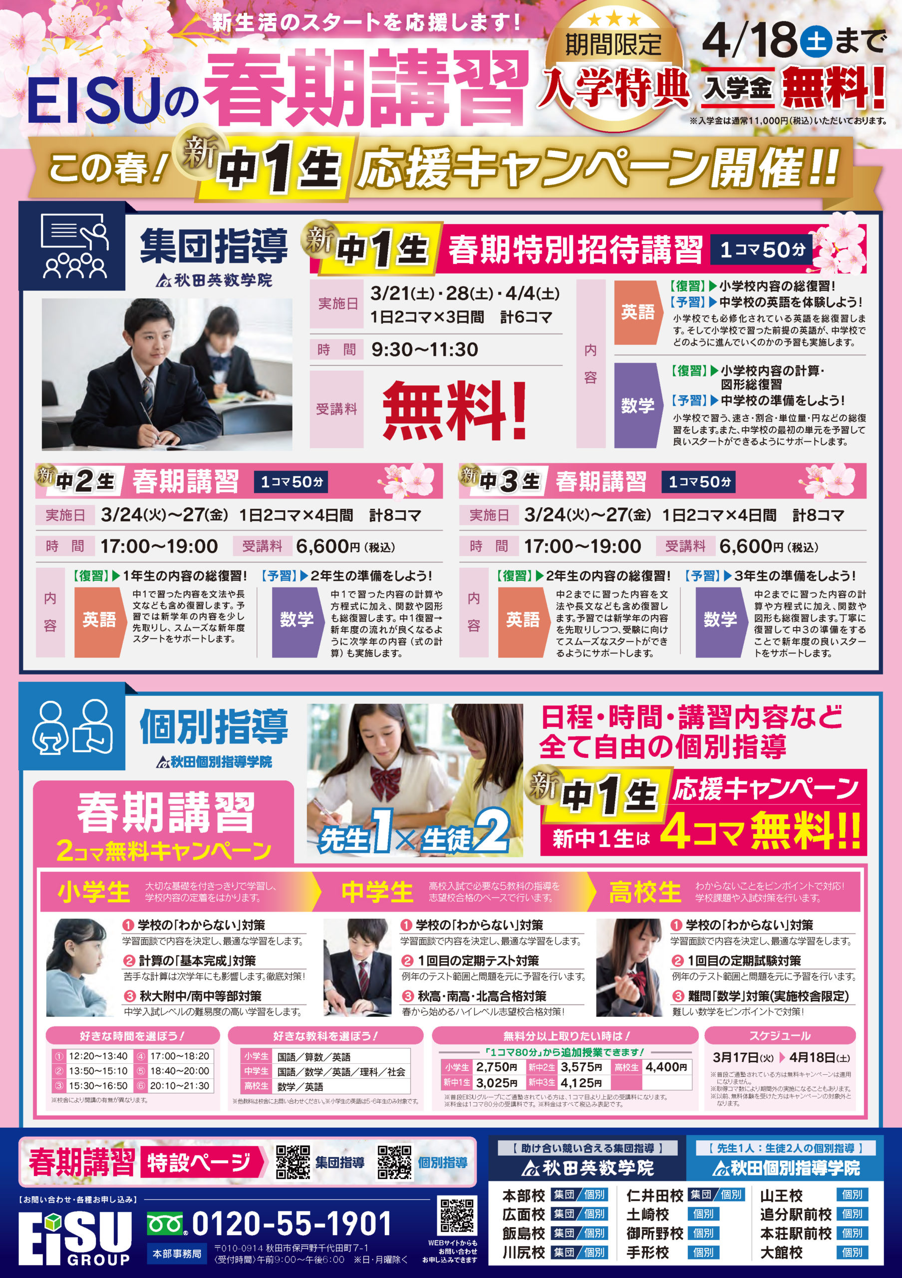 【集団指導】春期講習お申し込みお問い合わせはこちら